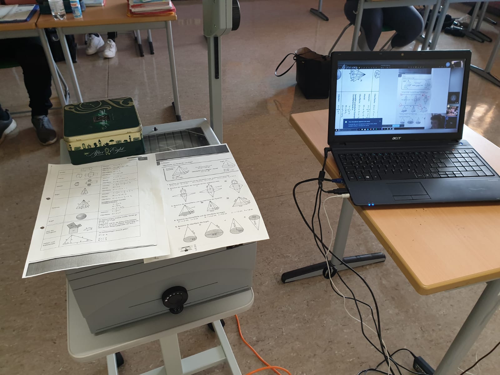 Lehrer und Schüler bei der Arbeit und mit viel Humor