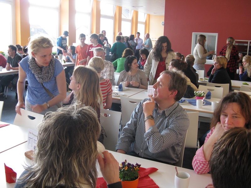 Erstmalig in der nagelneuen Mensa konnten sich die Eltern mit Kaffee und Kuchen stärken und in Gesprächen mit Lehrerinnen und Lehrern die eine oder andere Frage klären.
